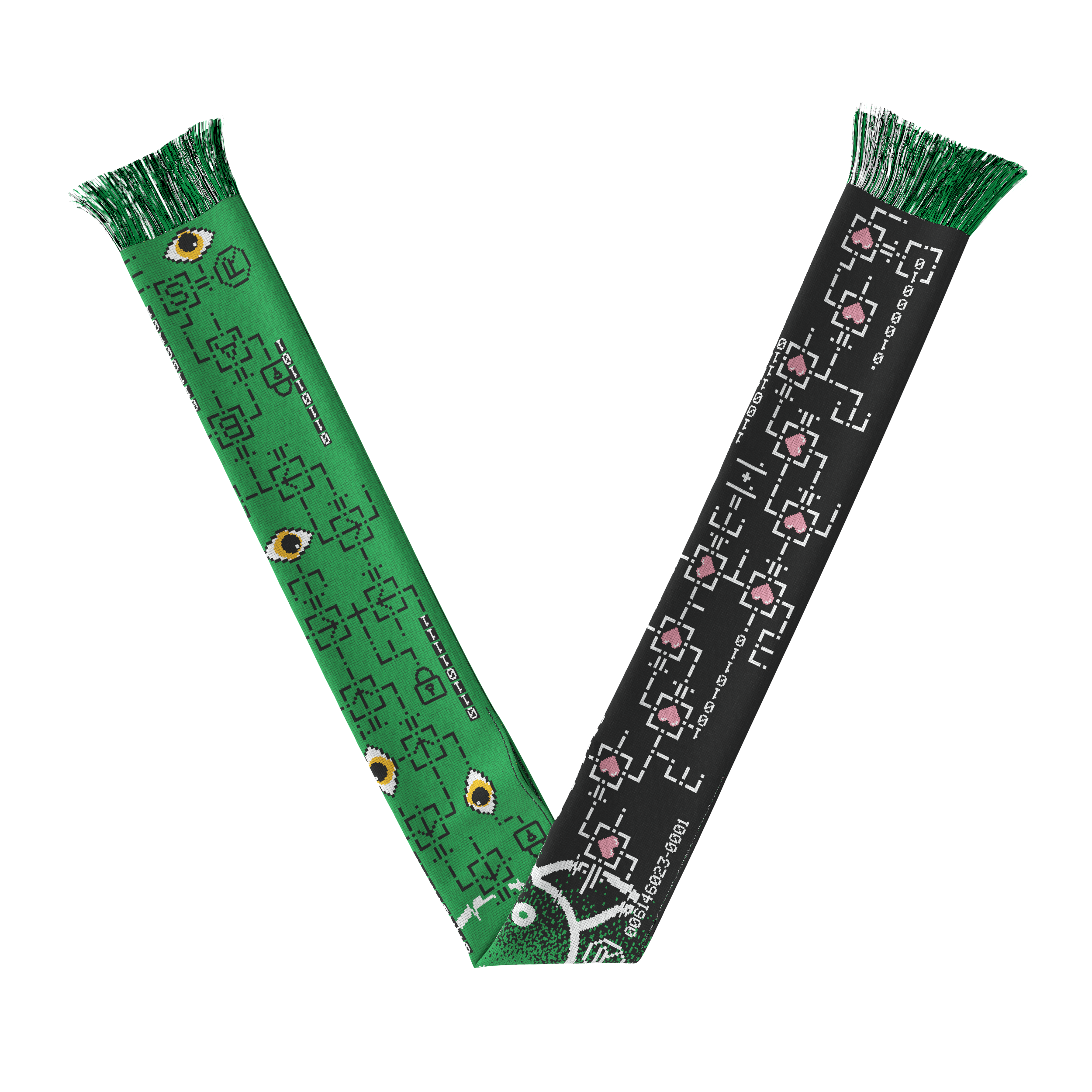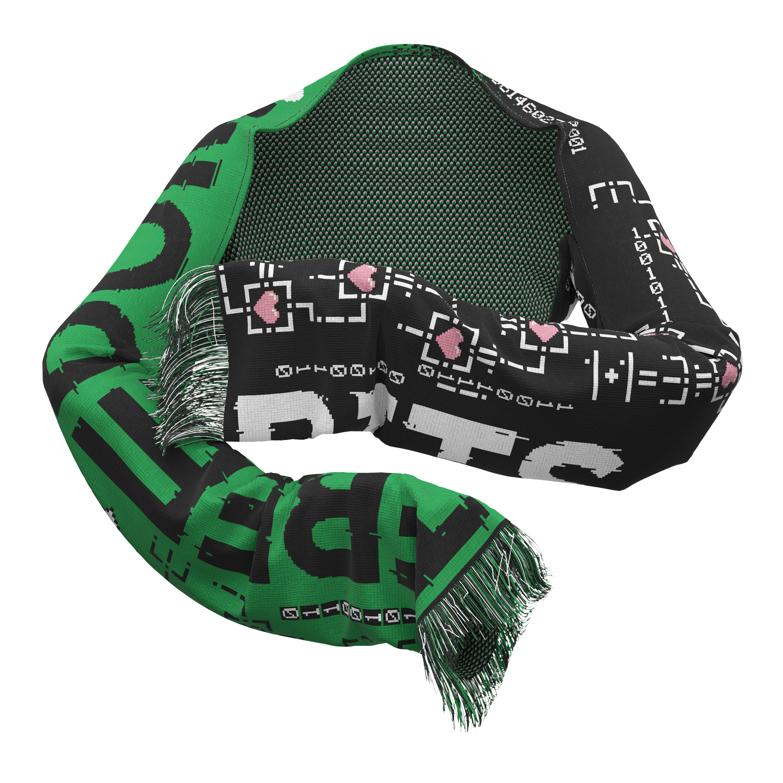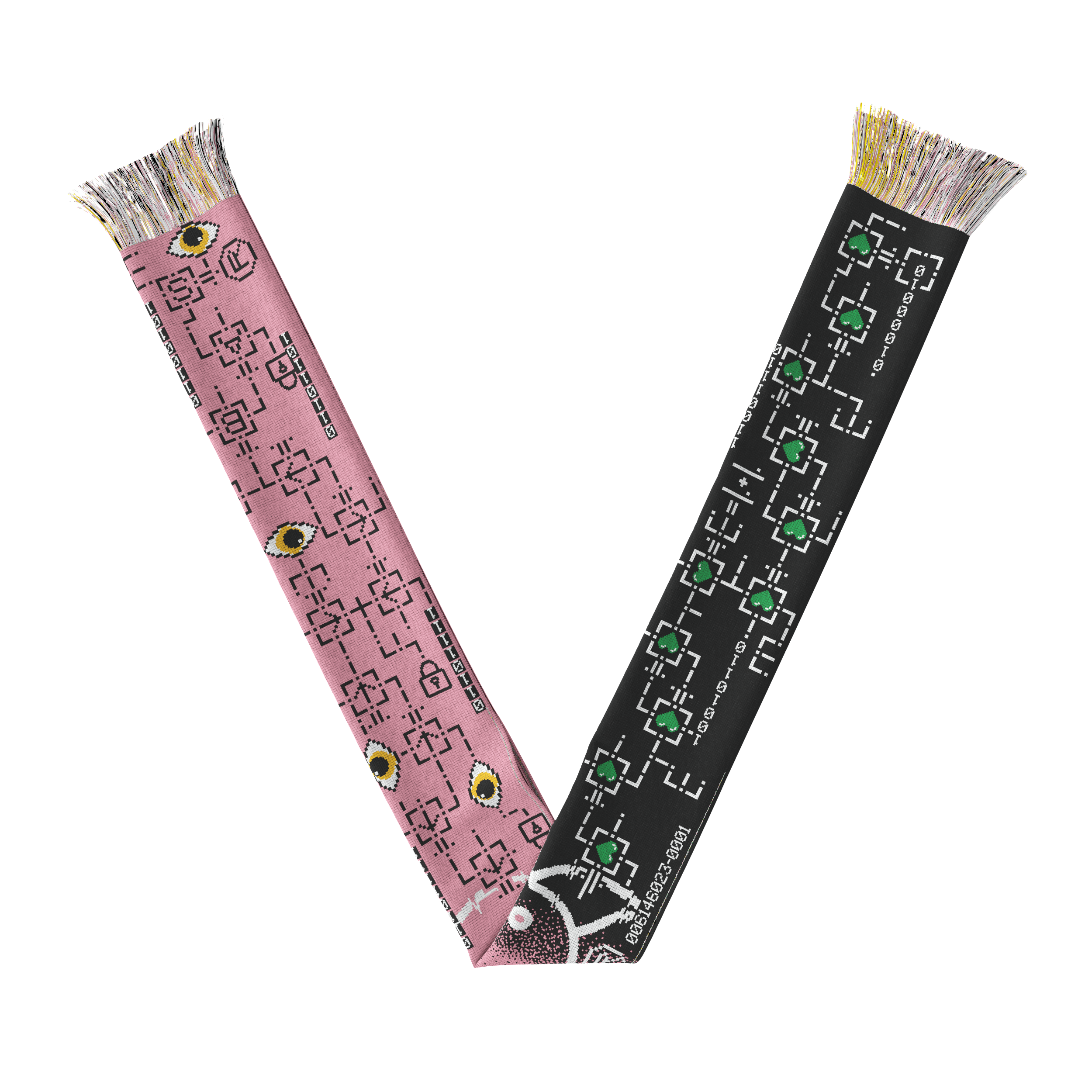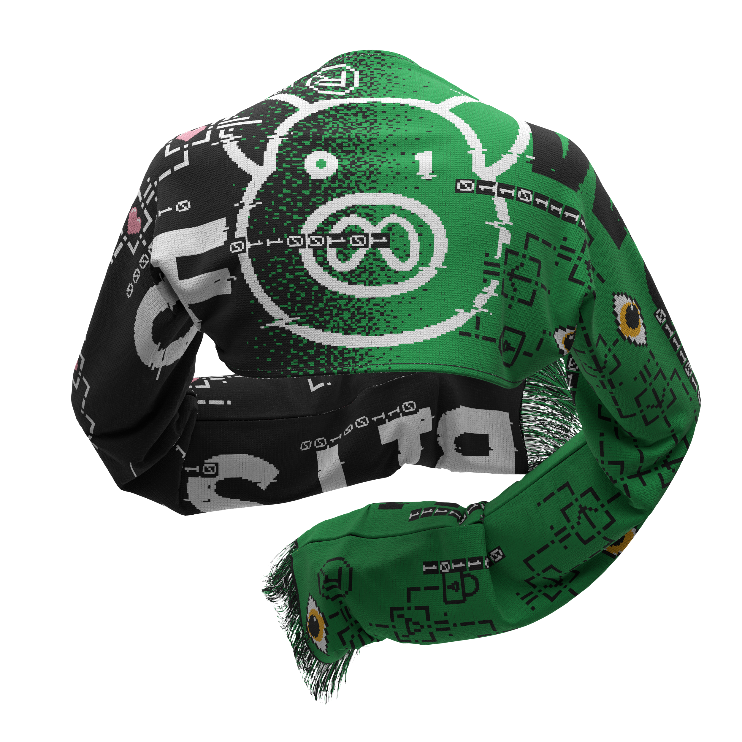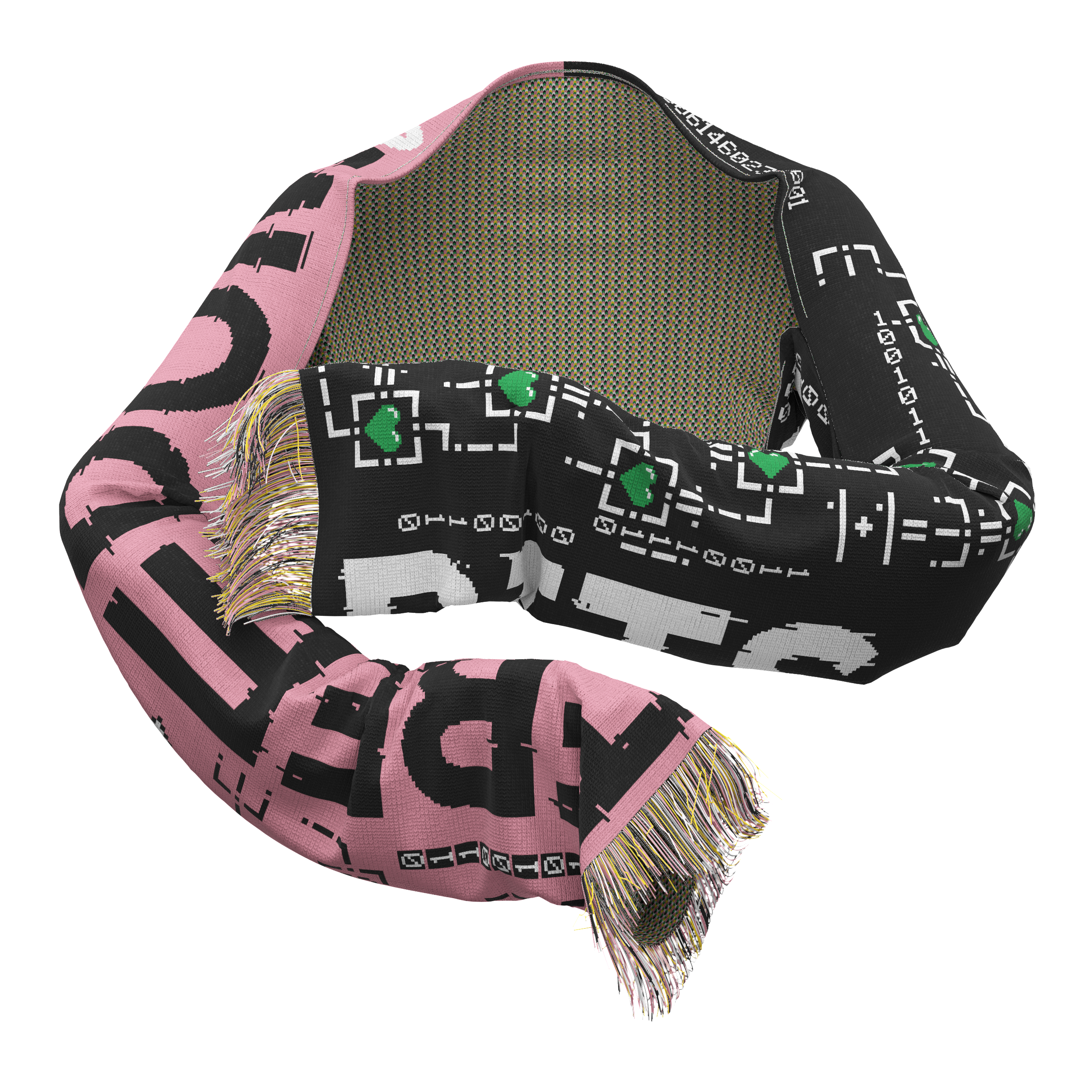bits of freedom multiple_identities_scarfsleeve, 2025-2026, 5 colour, machine woven, 100% acrylic